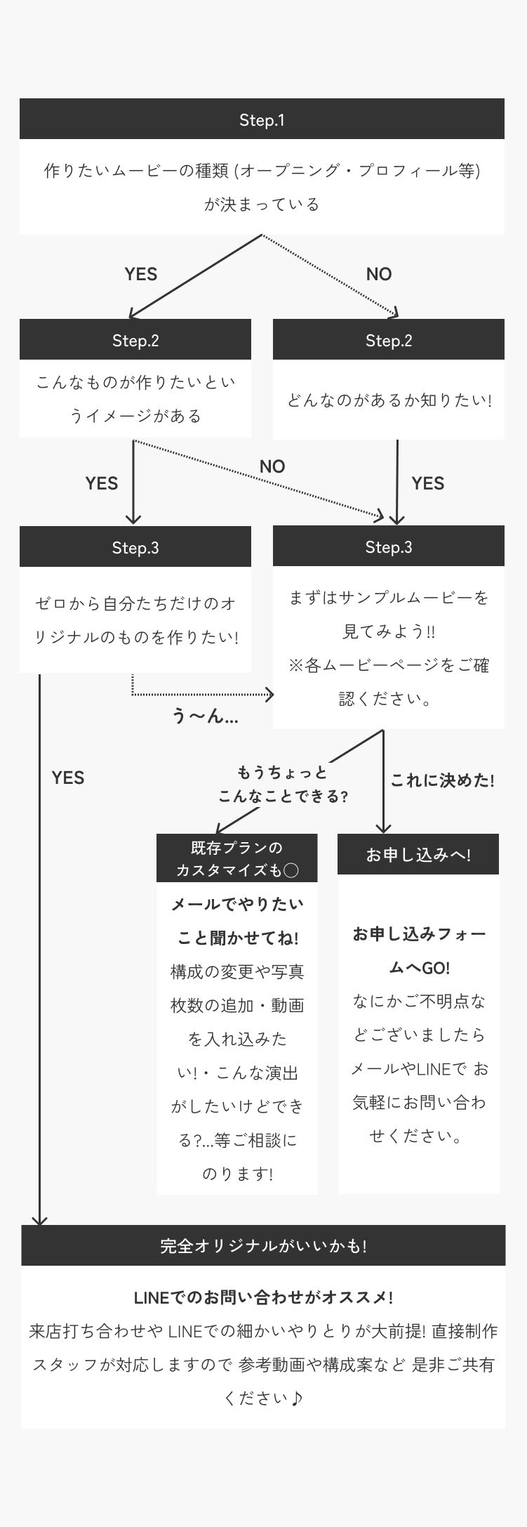 どんなムービーにしよう?相談してみようかな?...などお悩みの方へ、あなたにぴったりの作り方をお教えします。ぜひご参考にしてください。